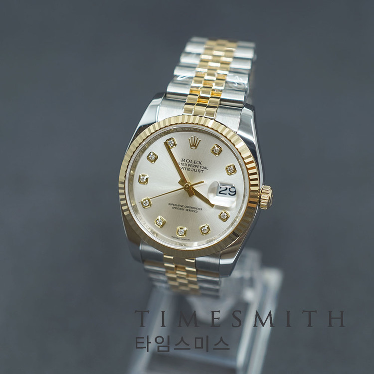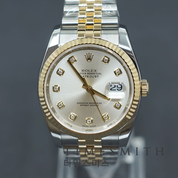 데이트저스트 36 옐로우골드 콤비 실버 10P 116233G입니다.