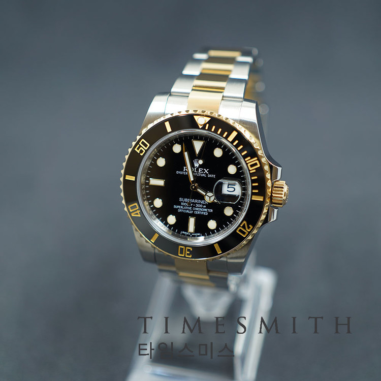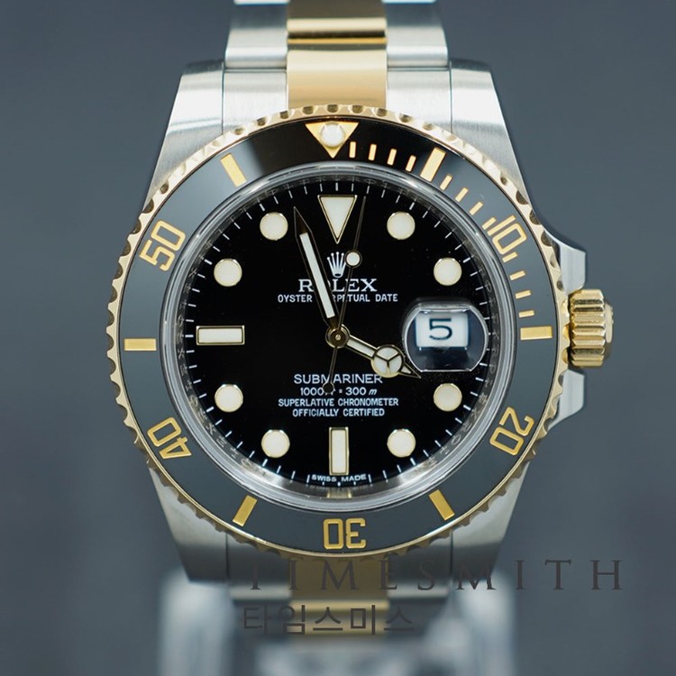 서브마리너 40 옐로우골드 콤비 블랙다이얼 116613LN입니다.