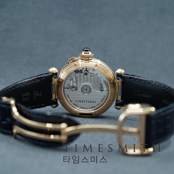 총 1.15캐럿의 브릴리언트 컷 다이아몬드 48개가 세팅된 베젤로 강렬한 독창성과 매력을 선사하는 파샤 드 까르띠에입니다.