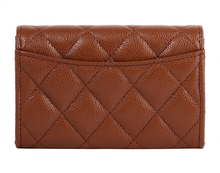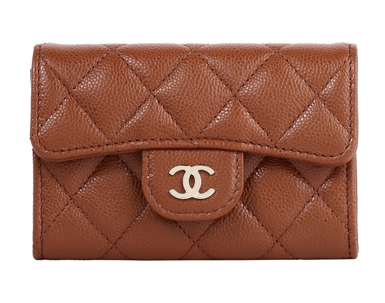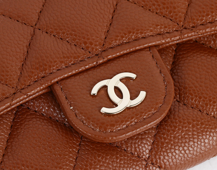 클래식 플랩 카드 홀더 브라운 샴페인 골드 캐비어를 소개합니다.