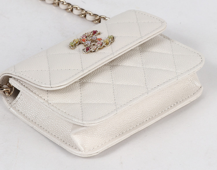 체인 카드 홀더 화이트 샴페인골드 캐비어를 소개합니다.