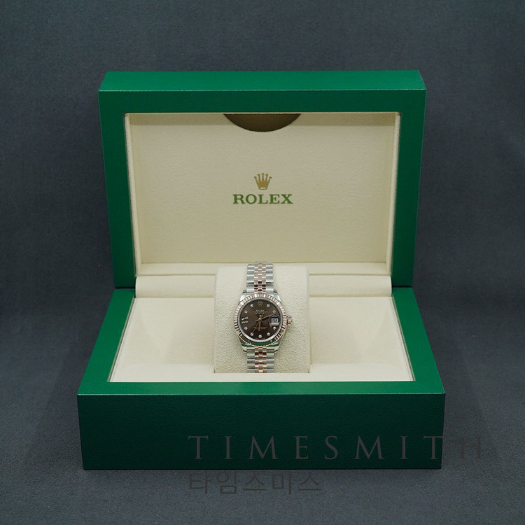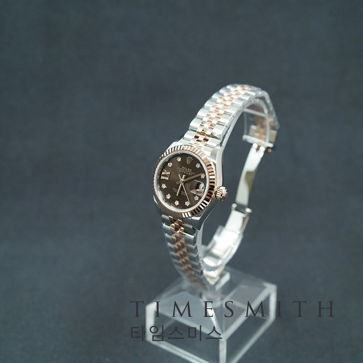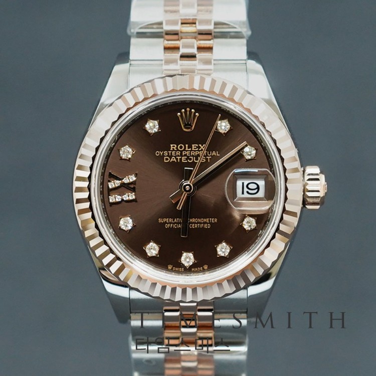 상품명 (미사용 신품 25년) 데이트저스트 28 로즈골드 콤비 초콜릿다이얼 별다이아 10P 279171