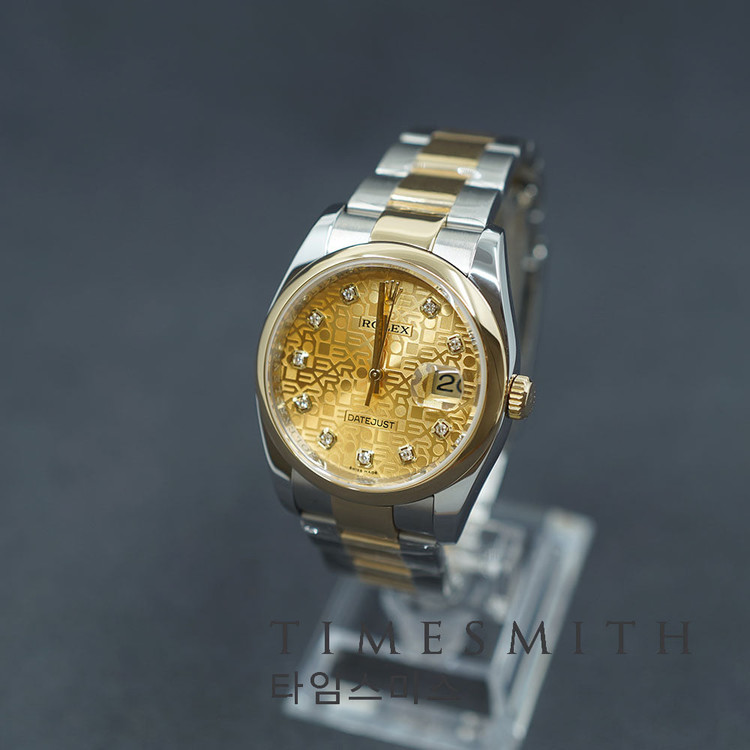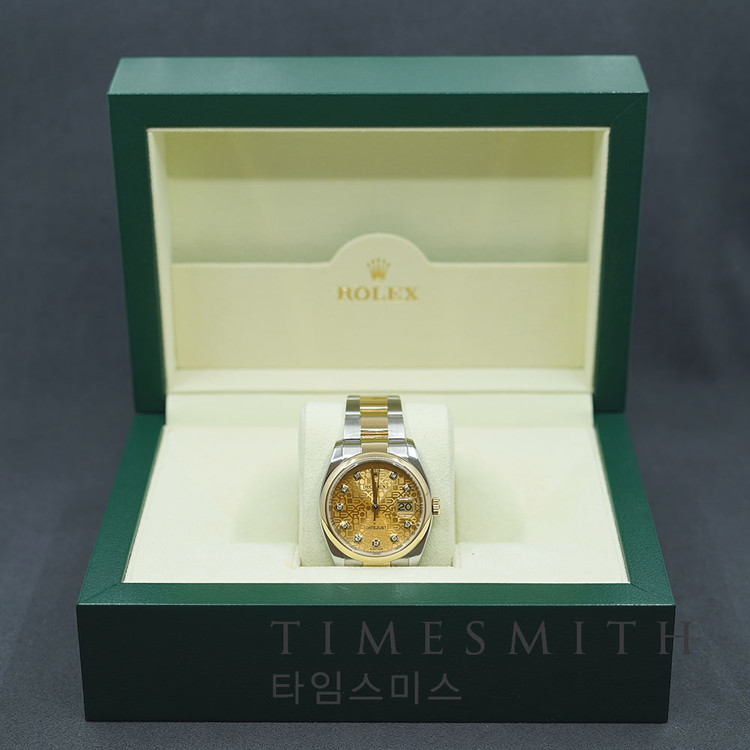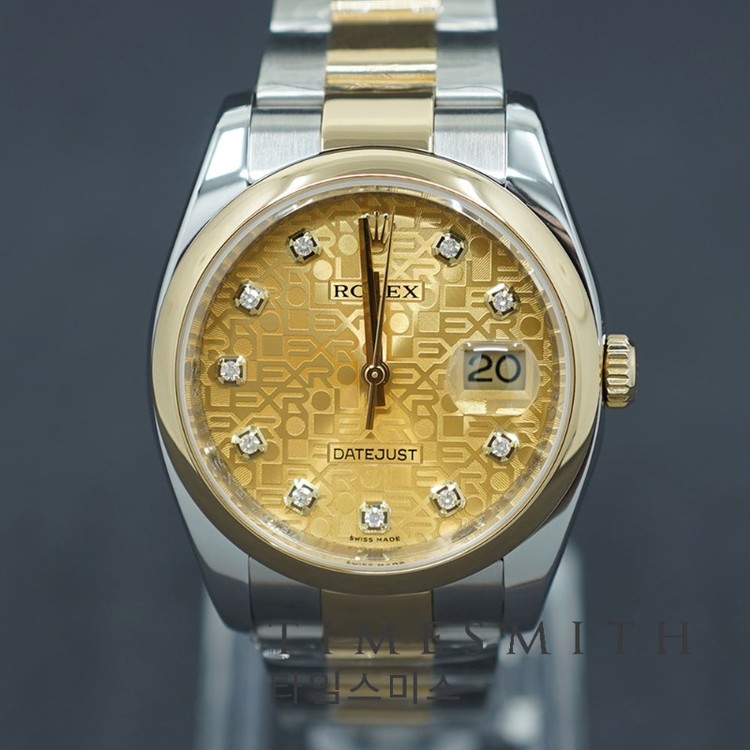 데이트저스트 36 옐로우골드 콤비 스무스베젤 컴퓨터 10P 116203G입니다.