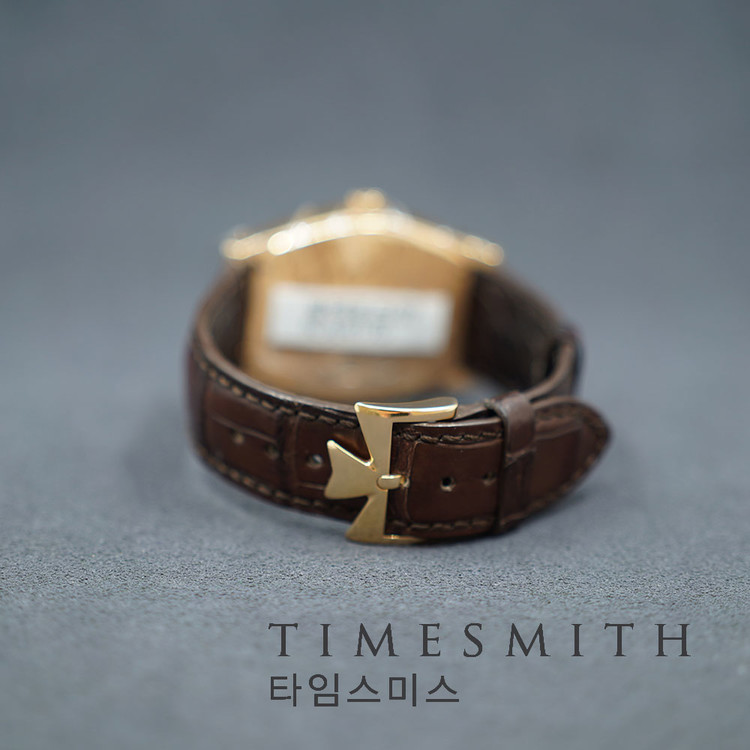 핑크 골드 케이스와 브라운의 스트랩이 조화를 이루는 말테입니다.